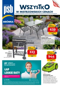 Zestaw mebli ogrodowych ELYSIA stół + 6 krzeseł, dostępne kolory: brązowy, szary, czarny; wym. stołu 150×90×70 cm, blat z hartowanego szkła, wym. krzeseł 56×70×90 cm, siedziska tapicerowane Robot koszący NACSMART BA-2571 akumulator Li-lon 20 V o poj. 4 Ah, silnik bezszczotkowy, IPX4, maks. pow. robocza: 1000 m 2 , szer. koszenia 22 cm, 8-stopniowa regulacja, wys. koszenia 25-60 mm, sterowanie zdalne za pomocą aplikacji mobilnej, w zesta- wie stacja dokująca do ładowania Grill węglowy z rusztem żeliwnym VL-00663 wym. 113,5 x 50 x 107 cm Cena z aplikacją Moja Mrówka cena bez aplikacji 988 944 zł/zest. Cena z aplikacją Moja Mrówka cena bez aplikacji 699 639 zł/zest. Cena z aplikacją Moja Mrówka cena bez aplikacji 369 333 zł/szt. W MISTRZOWSKICH CENACH Promocja obowiązuje od 23.04 do 09.05.2026 r. lub do wyczerpania puli produktów promocyjnych.