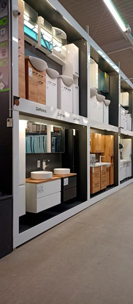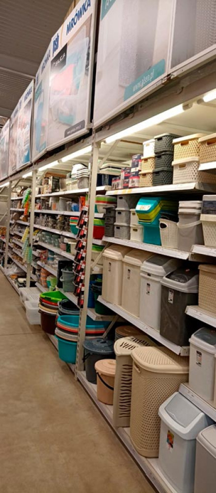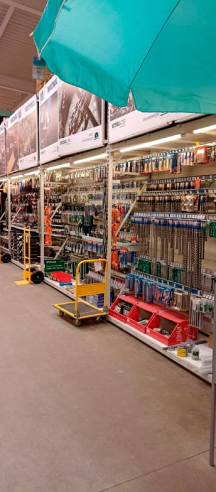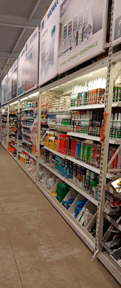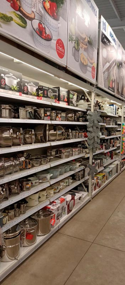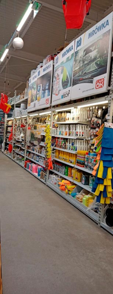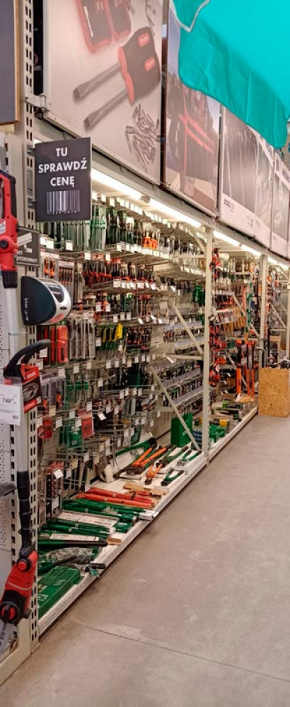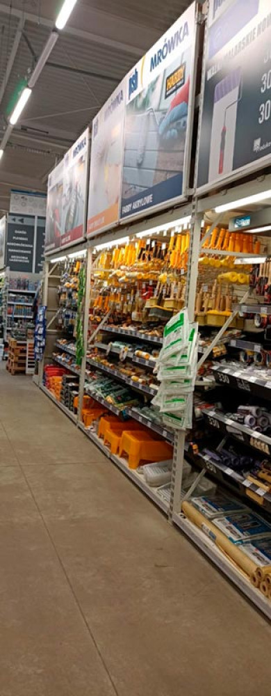 Klienci znajdą tu wszystko, czego potrzebują do budowy, remontu i wyposażenia domu oraz ogrodu – od narzędzi, materiałów budowlanych i hydraulicznych, przez farby, chemię budowlaną, aż po dekoracje, oświetlenie i artykuły sezonowe. Market wyróżnia się nowoczesnym wnętrzem, przejrzystym układem działów i regularnymi promocjami.